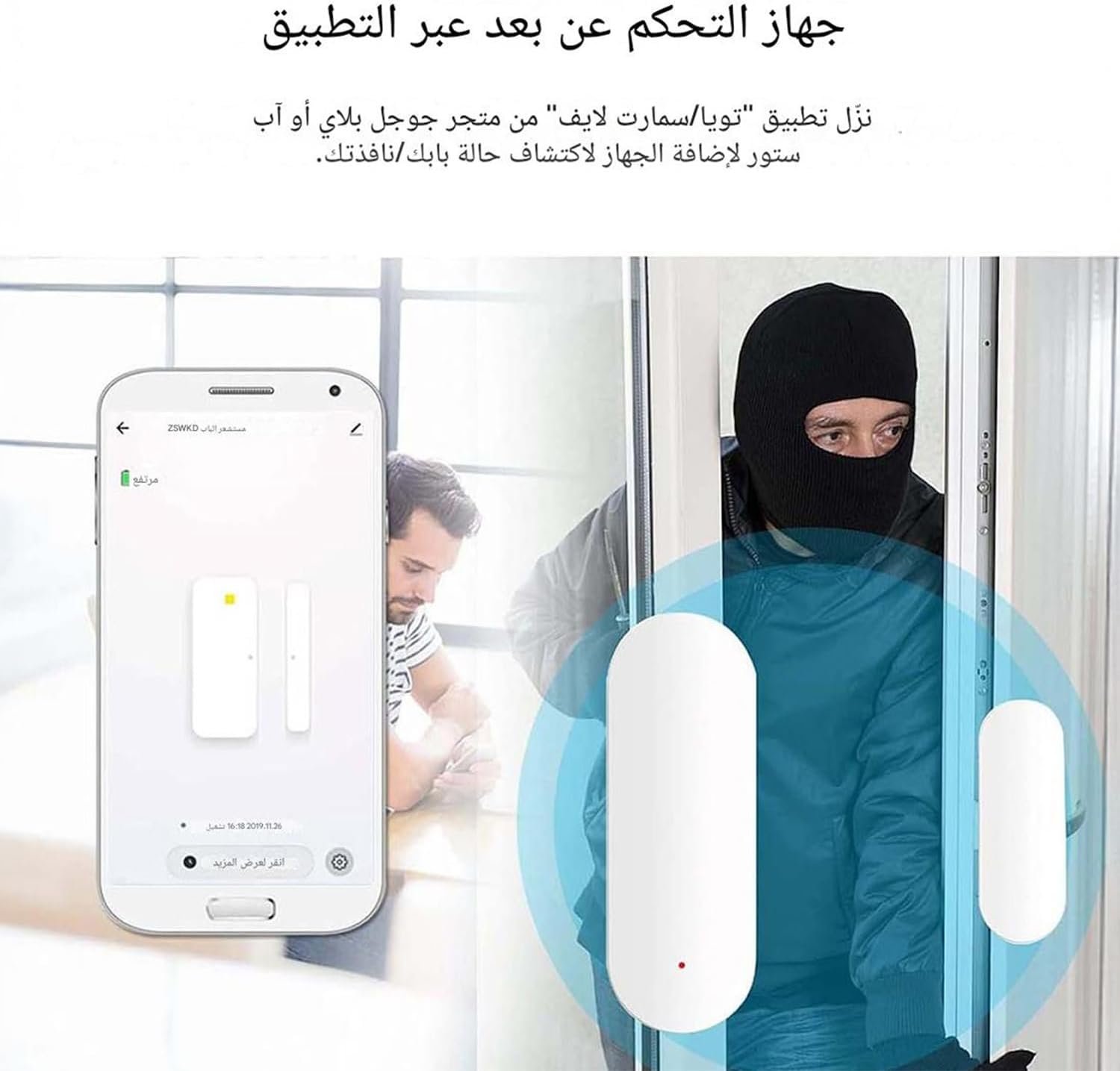 Smart WiFi Door & Window Sensor – Wireless Security Alarm, Real-Time Notifications, Alexa & Google Assistant Compatible, Easy Installation, Home & Office Monitoring
