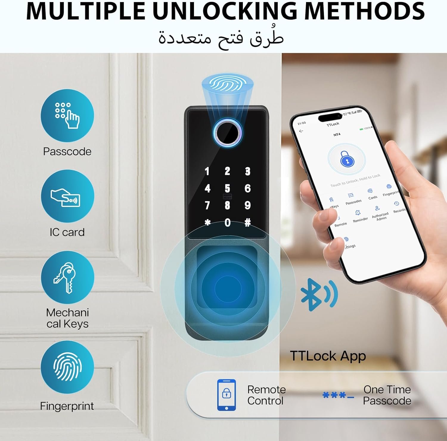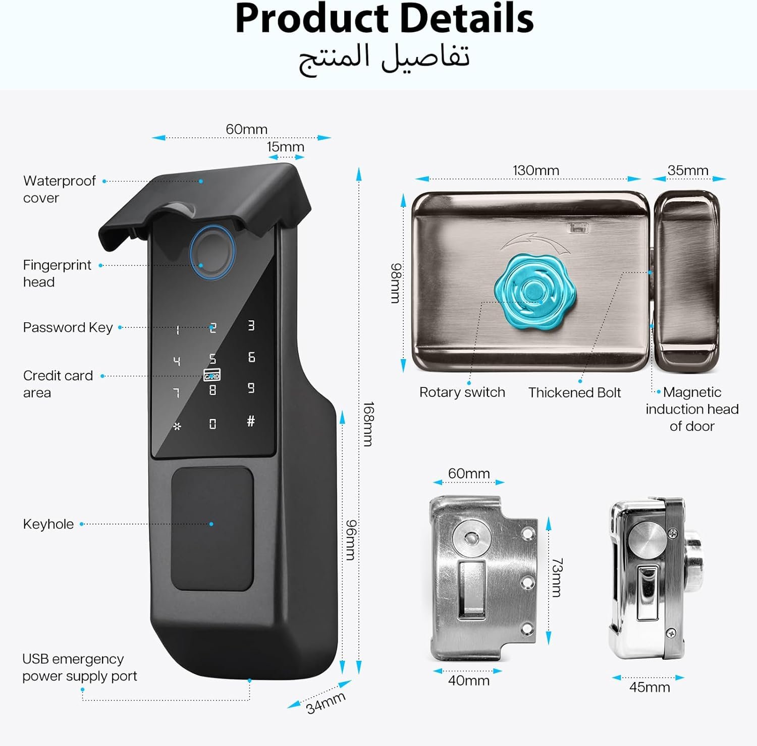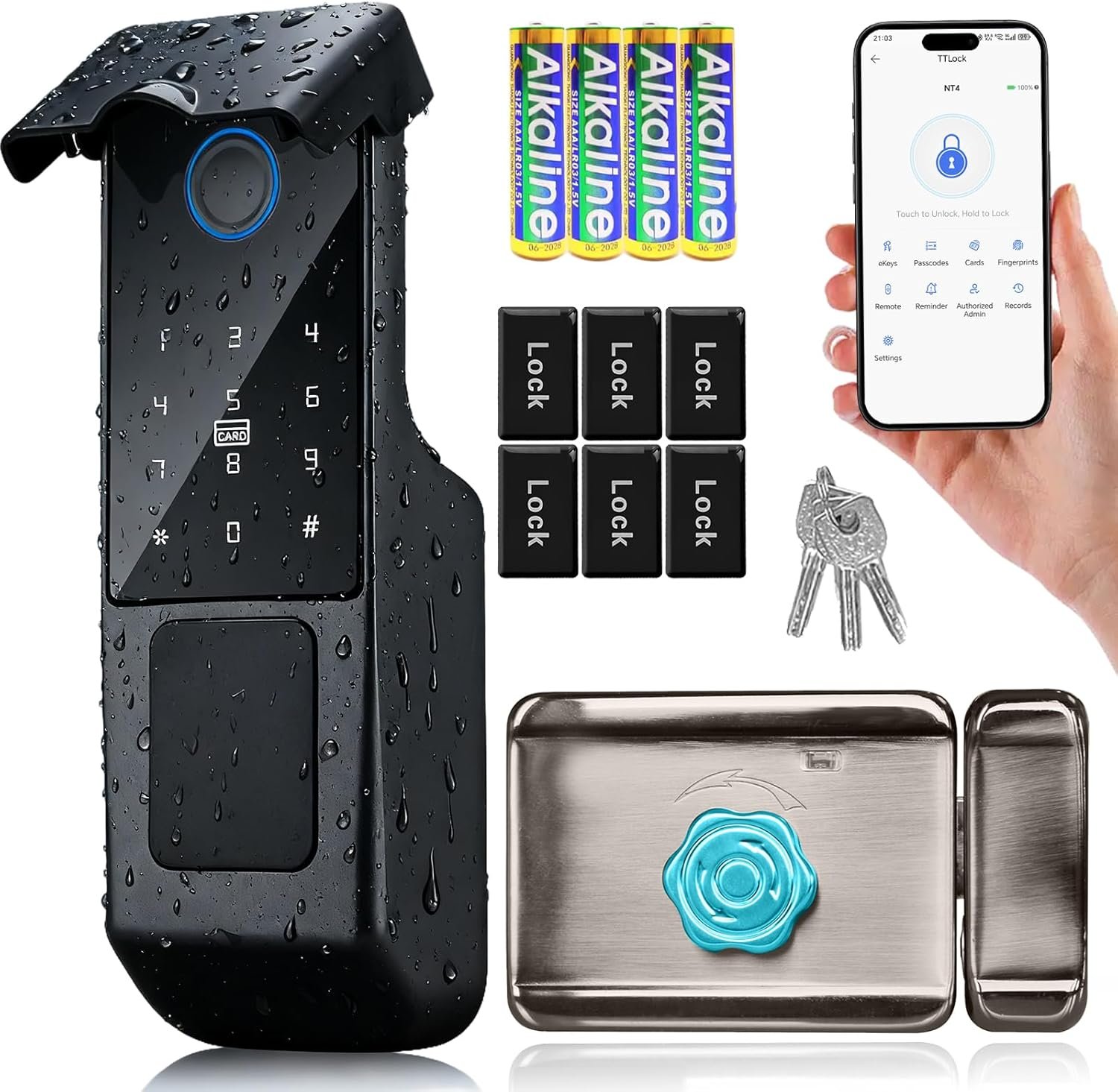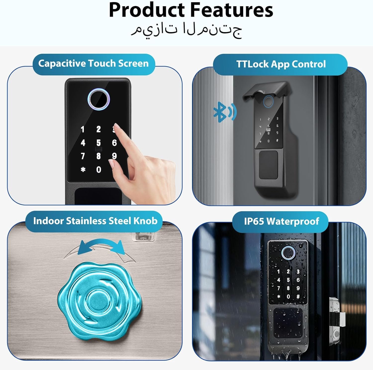IP65 Waterproof Smart Door Lock, TTLock Bluetooth App Control, Fingerprint/Password/Key/Card/APP Unlock, Heavy-Duty Outdoor & Indoor Use for Home Gate, Villa, Office (عابرة للماء ذو تصنيف IP65)