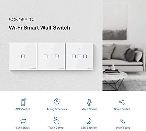 Sonoff T0UK3C-TX 3 Gang Smart WiFi Wall Light Switch APP/Touch Control Timer UK Standard Panel Smart Switch Compatible with Home/Nest & Alexa