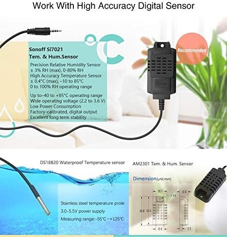 Sonoff Waterproof Temperature Sensor Ds18B20, Work With Wi-Fi Wireless Remote Temperature Sensor Smart Switch (Sonoff Th10/Th16) For Home,Compatible With Alexa
