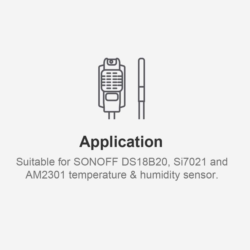 The Sonoff extension allows you to extend your wired temperature and humidity probe! It is suitable for Sonoff DS18B20, Si7021 and AM2301 temperature and humidity sensors. The maximum length for a DS18B20 is 8 m