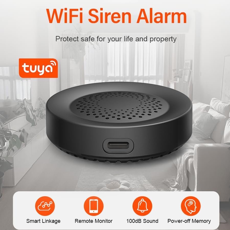 Smart Siren Alarm 100dB Loud Speaker Wifi Siren Speaker with Strobe Light Alert for Home Security System Works with Smart Life App (Black)
