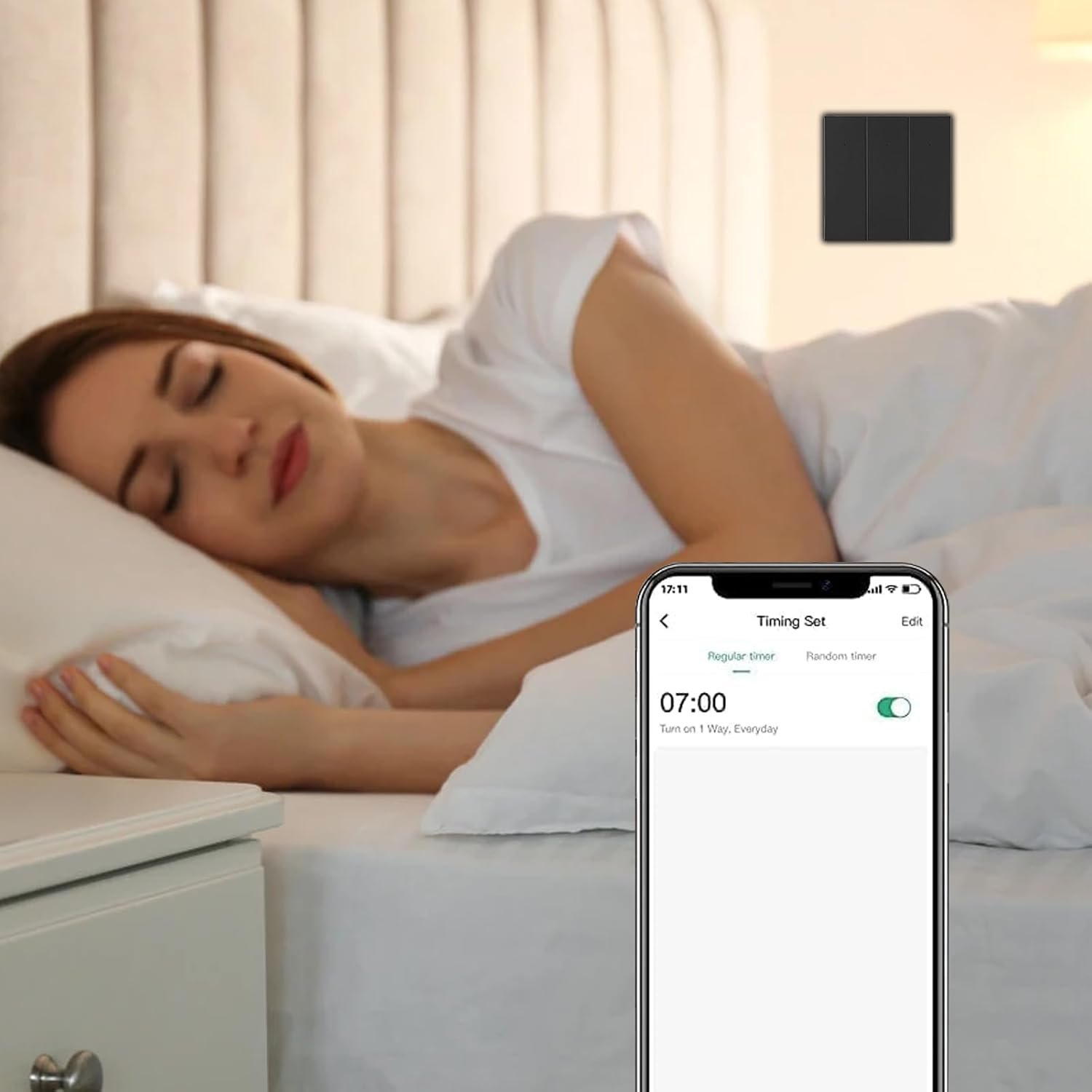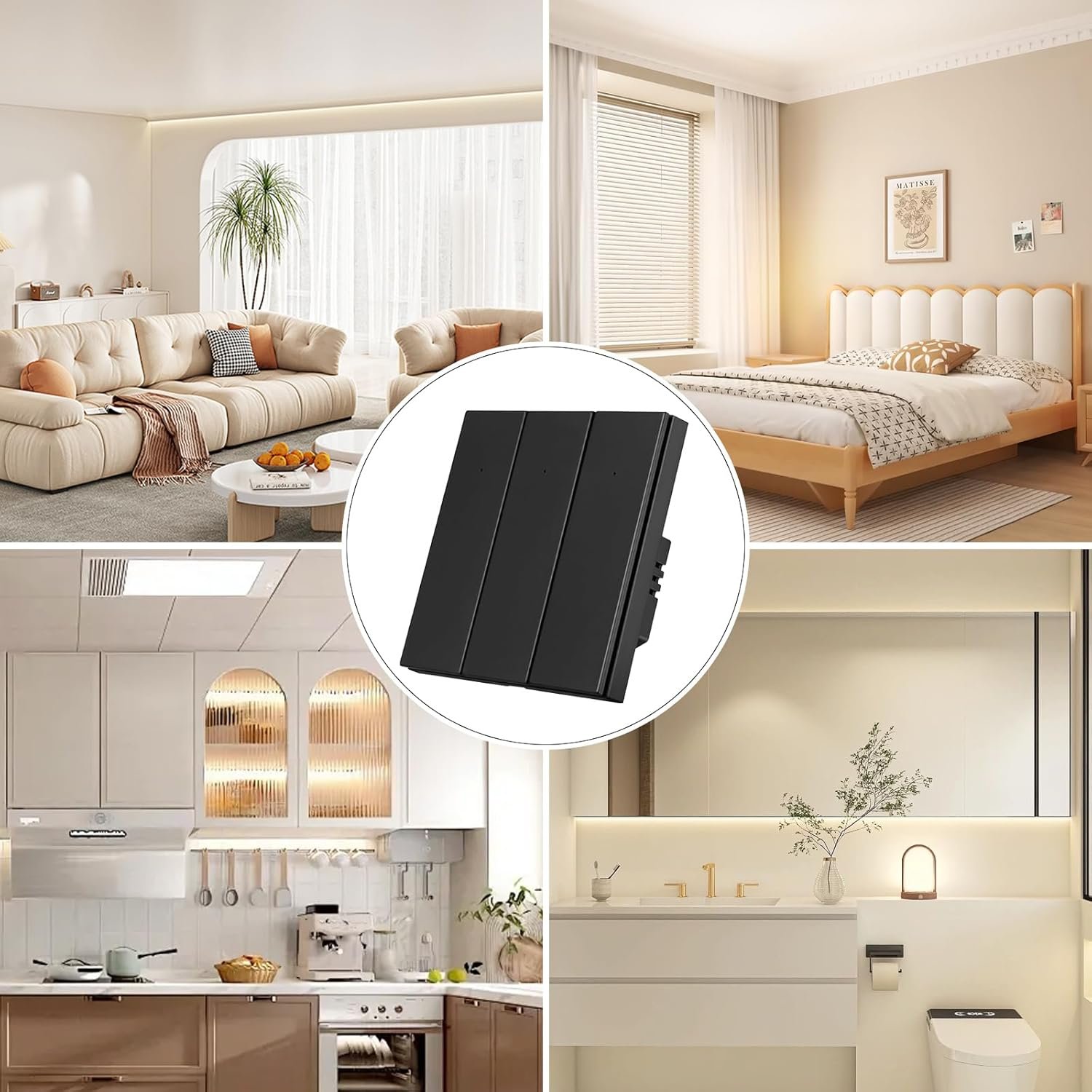 WIFI Smart Light Switch, Push-button Light Switch, No Neutral Required, LED Backlight, Works with Alexa, Timer, Multi-Way Control by Smart Life/Tuya APP (Black, 2 Gang)